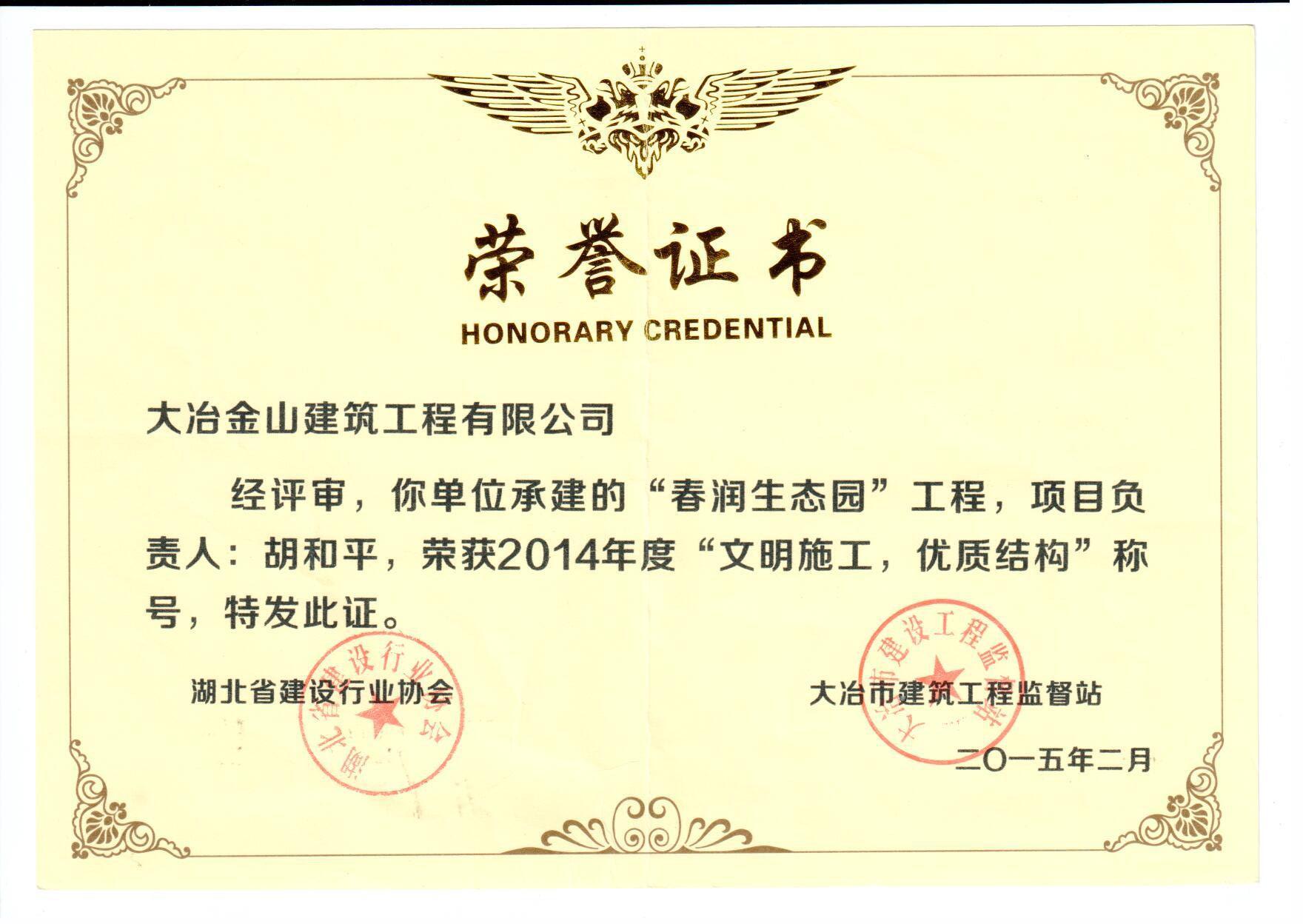 大冶金山建筑工程有限公司是一家專業(yè)從事建筑安裝總承包、園林古建筑、園林綠化景觀工程、文物修繕、市政道路工程、鋼結(jié)構(gòu)工程等綜合型施工企業(yè),公司具有資本投資運(yùn)營合作實力。