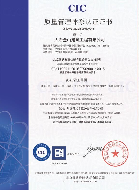 質(zhì)量管理體系認(rèn)證證書...