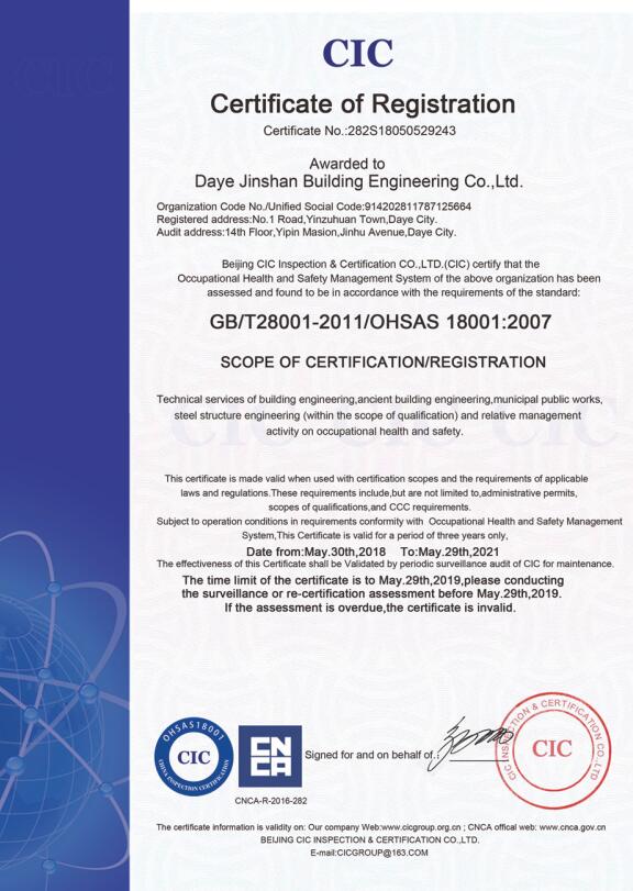 大冶金山建筑工程有限公司始建于1984年,屬鎮(zhèn)辦集體企業(yè)。1997年改制為大冶山建筑工程有限責(zé)任公司,屬股份制企業(yè)。2013年更名為大冶金山建筑工程有限公司,2018年3月公司資源重組,公司注冊資金達(dá)到10180.00萬元,公司法定代表人為劉瑞華。公司具有古建筑工程專業(yè)承包壹級、建筑工程施工總承包貳級、市政工程總承包叁級、鋼結(jié)構(gòu)工程專業(yè)承包叁級資質(zhì)。